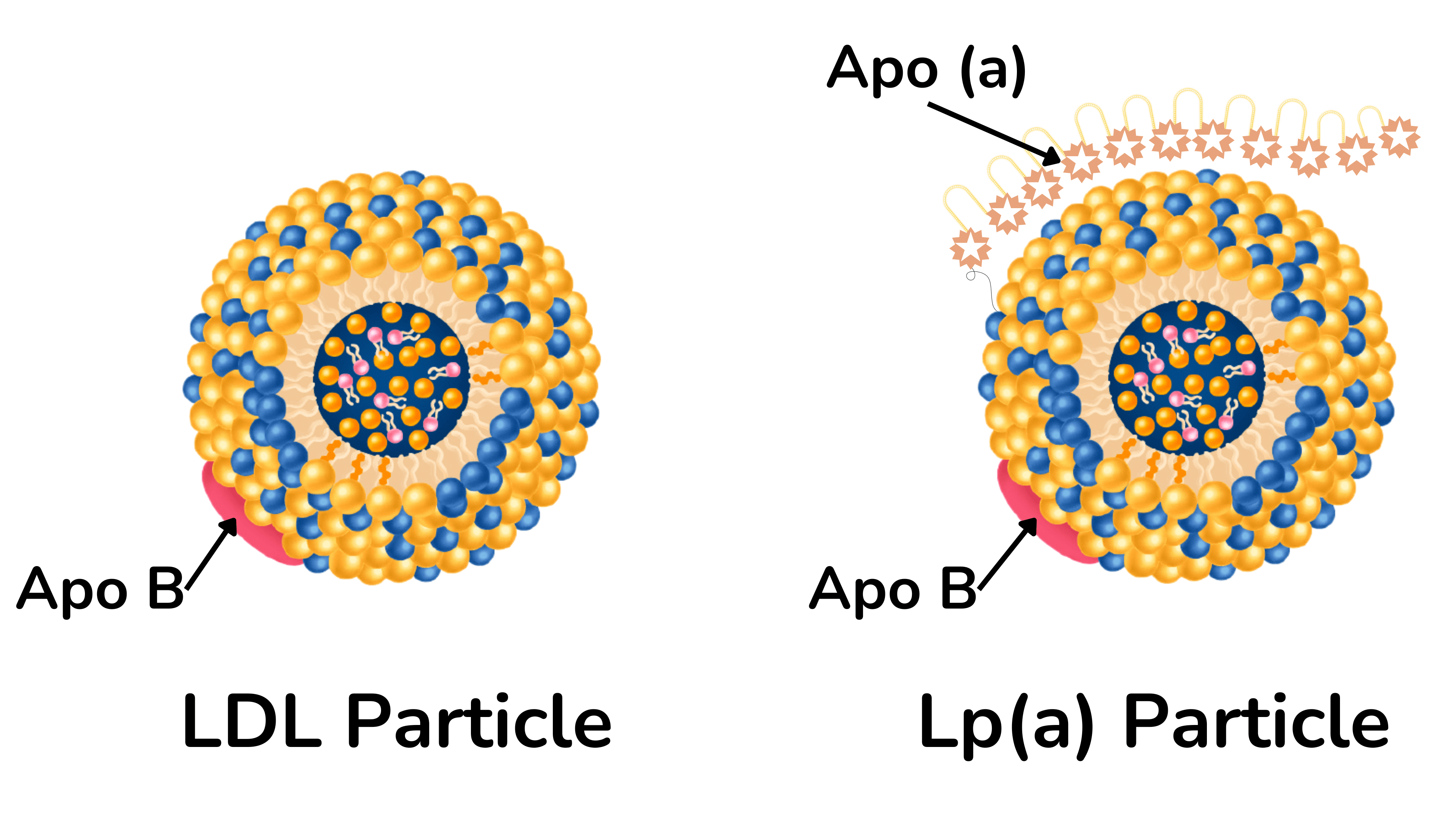 现在,还有另一种经常被遗忘的脂蛋白:脂蛋白 (a),或 Lp(a)(“Lp little a”)。Lp(a) 是另一种类似于 LDL 的脂蛋白,不仅有一个载脂蛋白 B 分子,还有一种称为载脂蛋白 (a) 的额外蛋白质。