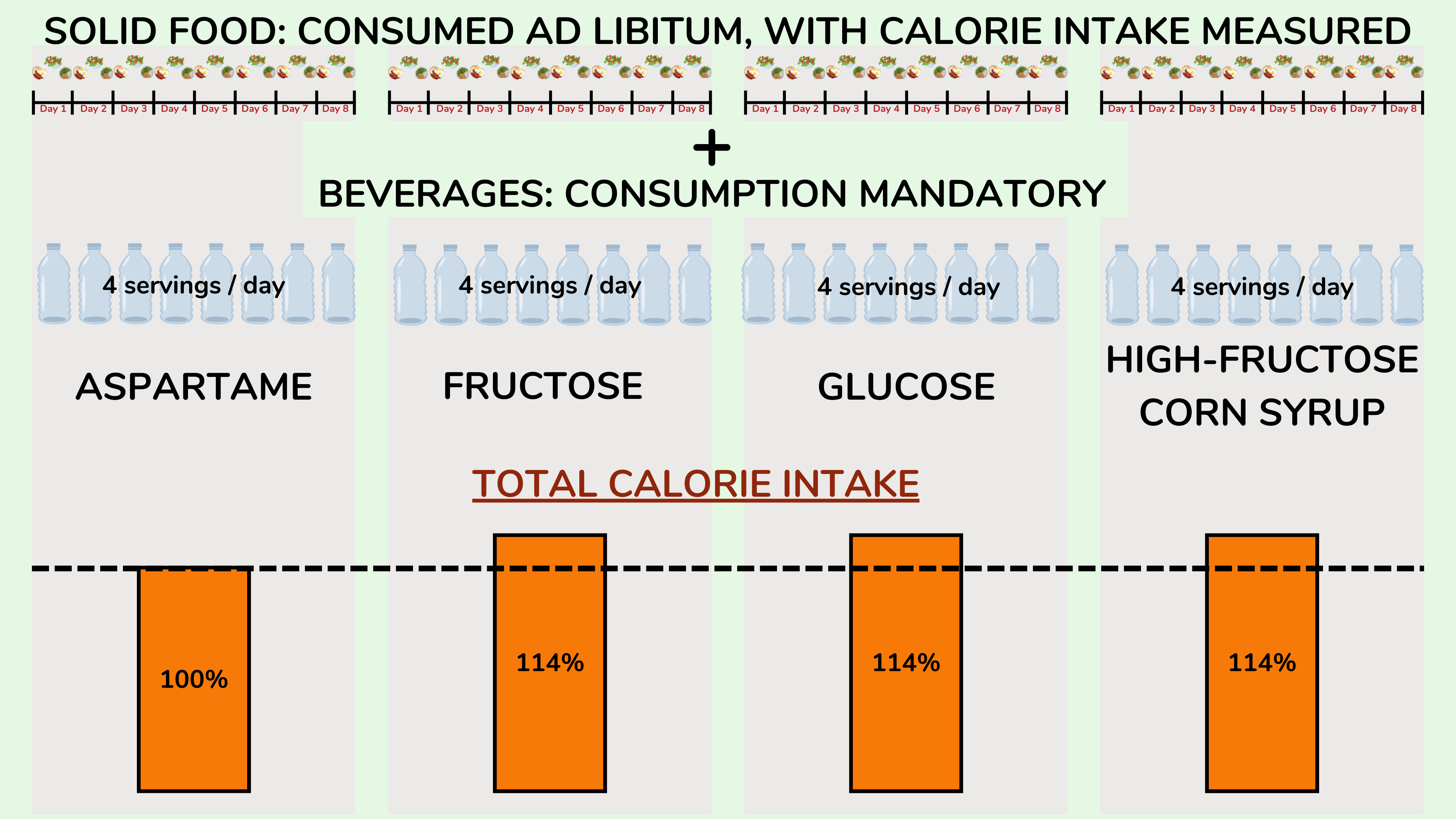 - Tordoff 和 Alleva。饮用添加阿斯巴甜或高果糖玉米糖浆的苏打水对食物摄入量和体重的影响。美国临床营养学杂志 1990;51:963-9。