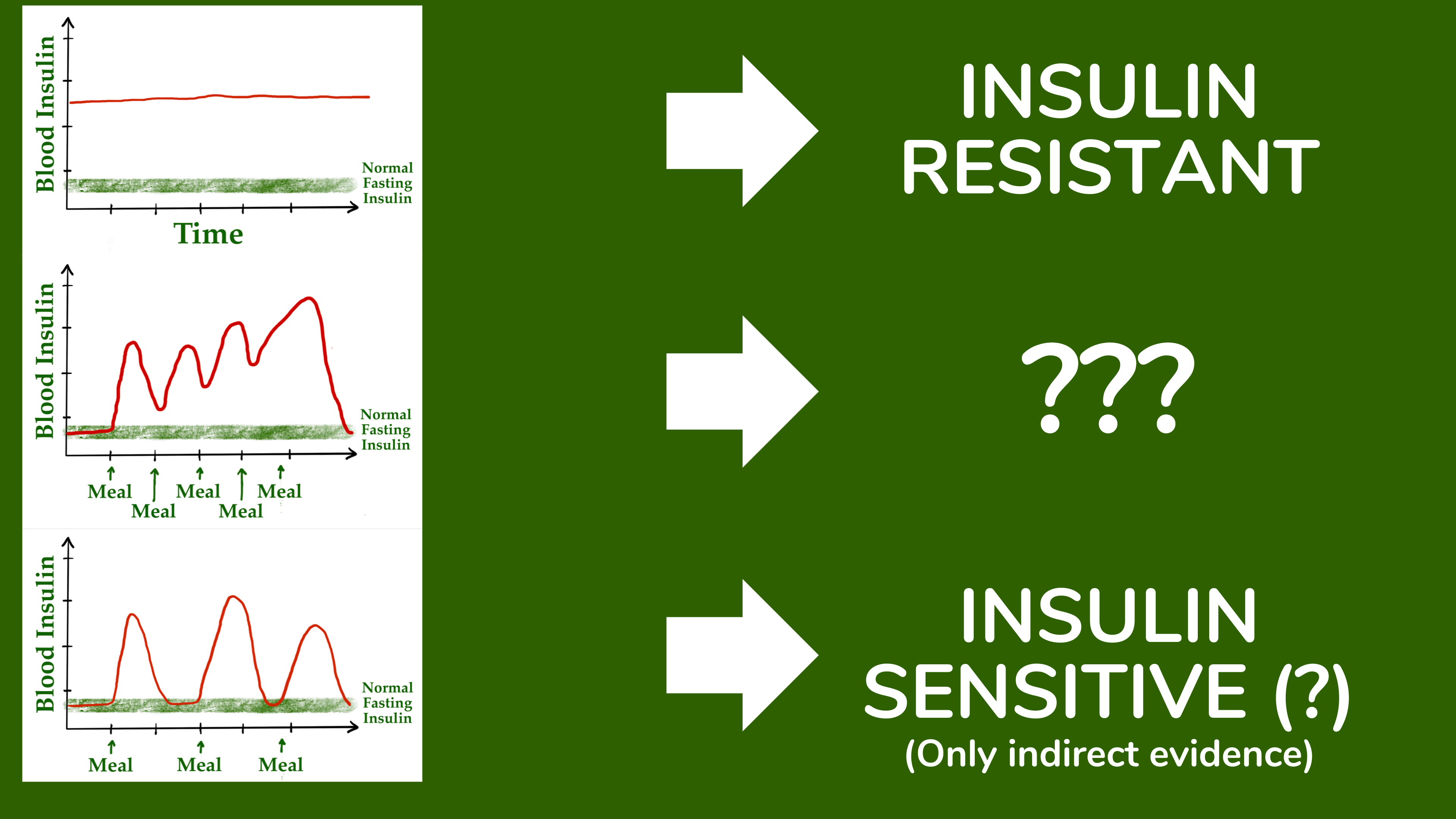 因此,虽然我认为这篇文献提供了长期升高的血液胰岛素水平可能导致胰岛素抵抗的证据,但尚不清楚这是否也适用于饮食碳水化合物引起的胰岛素暂时增加。